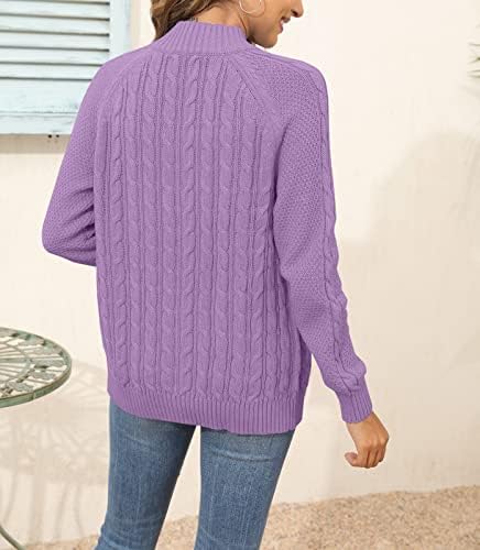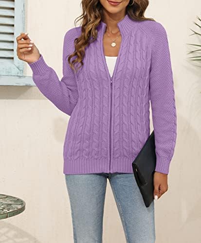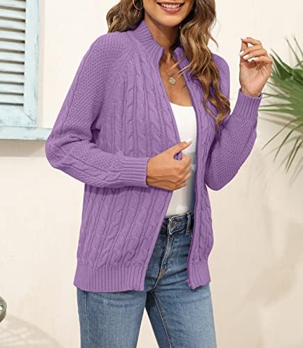 Hongqizo Womens Zipper Cable Knit Cardigan Long Sleeve Solid Sweater Cardigan Casual Sweater Coat