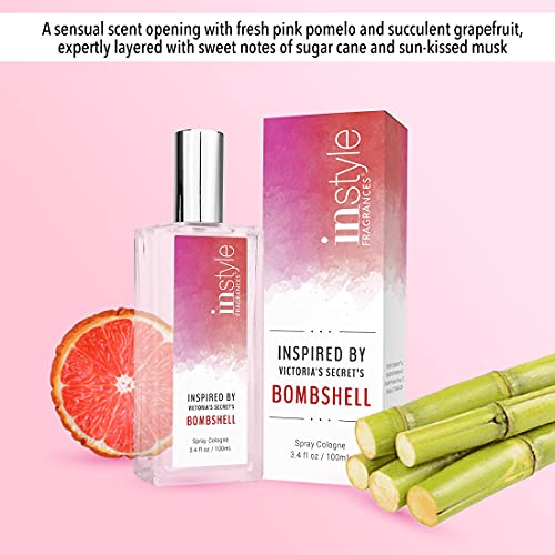 Our high quality perfumes for women are crafted and evaluated by Master Perfumers in the US & UK. These fragrances for women are made with the finest fragrance oils and ingredients from around the world. Inspired by Victoria's Secret's Bombshell - the perfume features a sensual scent opening with fresh pink pomelo and succulent grapefruit, expertly layered with sweet notes of sugar cane and sun-kissed musk that will enchant your senses. Instyle Fragrances for women are vegan, paraben free and cruelty free. These vegan perfumes have never been tested on animals so that you can smell good and also feel good about using them! Eau De Toilette (EDT) strength refers to pure fragrance oil concentrations of between 7 and 15% and like all EDTs will last about 3-5 hours or more depending on the scent and your unique body chemistry. DISCLAIMER: Bombshell is a trademark of Victoria's Secret. Instyle Products LLC competes with Bombshell. The women’s perfume does not use the Bombshell fragrance and is not associated in any way with Bombshell or Victoria's Secret.