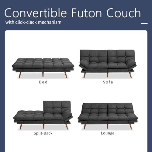 The futon sofa's frame is made of highly durable hardwood with the possibility to sustain up to 600 lbs