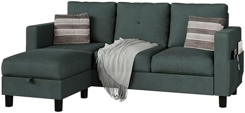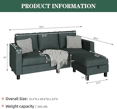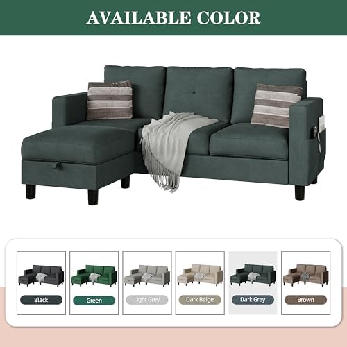 JAMFLY Convertible Sectional Sofas Couches for Living Room, L Shaped Couch with Storage Ottoman, Small Sectional 3 Seater Sofa for Small Spaces, Dark Grey