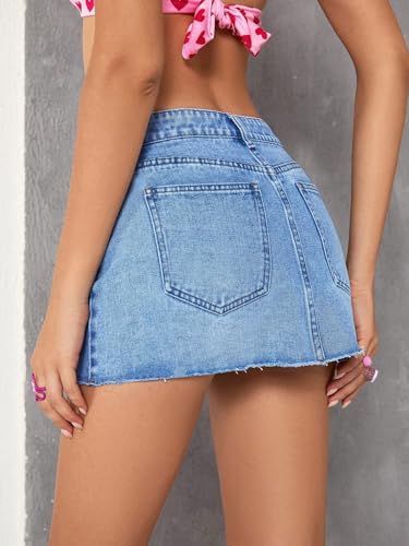 Jumppmile Womens Mini Denim Skirt Mid Waist Mini Dress Jean Skirts