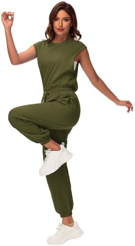Jumpsuits for Women Cap Sleeve Romper Summer Loose Open Back Onesie With Pockets