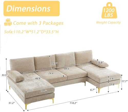 114" U-Shape Sofa Couch 4-Seat Couch with Chaise Chenille Fabric Upholstered