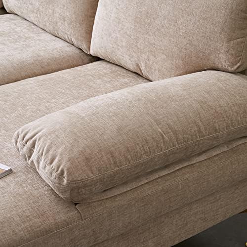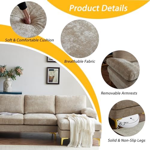 Karl home Convertible Sectional Sofa 110" U-Shape Sofa Couch 4-Seat Couch with Chaise ChenilleFabric Upholstered for Living Room, Apartment, Office, Camel
