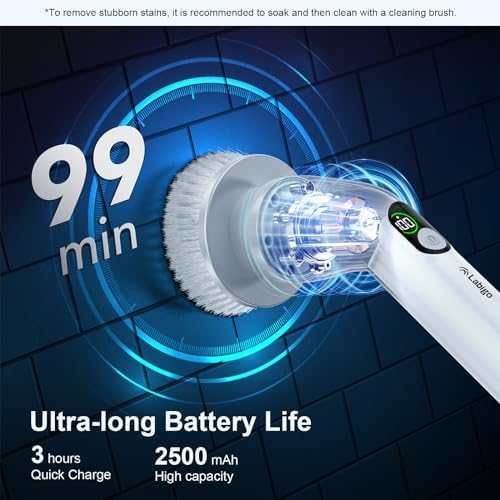I got this because I’m disabled, muscular dystrophy, so I don’t have much elbow grease to use for cleaning. So far I used this to clean a strip around the perimeter on my white kitchen linoleum that was sludge brown. Running a Swiffer mop over it didn’t budge it. But this scrubber got through it. Not as quickly as I thought it would. But much quicker than I could any other way. I should note that I was careful not to press too hard because I didn’t want to make the scrubber stop. So I may have been overly cautious and could’ve used more pressure. I was definitely impressed though. It’s a power horse. I’m going to have to get a set of replacement heads soon because I was disappointed that this one doesn’t include the smaller round brush head. I would like that one for my counters and backsplashes. I used the large round one on the floor. My reason for 4 stars and not 5 is that I wish the battery lasted longer and it is a bit heavy. I think for even a normal person it will get tiring if you have to hold it up high. Like doing windows or shower walls. The battery did last the 90 minutes it’s supposed to. I just wish it was maybe a full 2 hours or something. So pros: scrubbing power strong, never bogged down, nice assortment of brushes, easy to detach the handles, lives up to battery life advertised and charges in just a couple hours. Cons: A bit heavy, wish it had a little more battery time, and wish it came with the smaller brush head. I have trouble getting the handle to extend but that could just be my disability :)