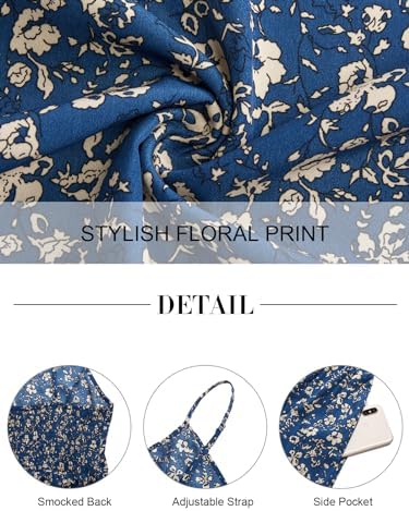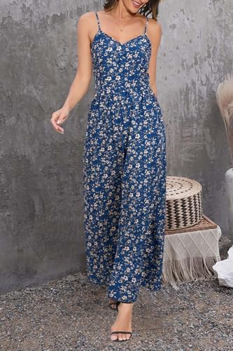 LAISHEN Wide Leg Jumpsuits for Women Dressy Casual 2024 Summer Rompers Smocked Sleeveless Floral Jumpers with Pockets