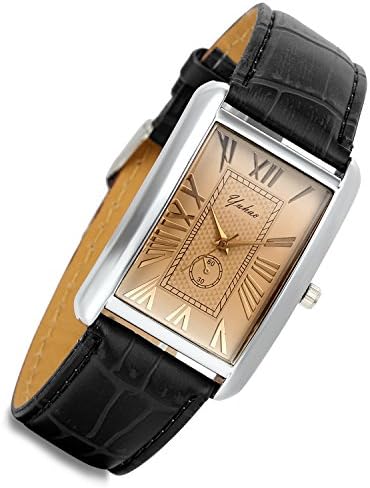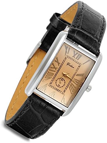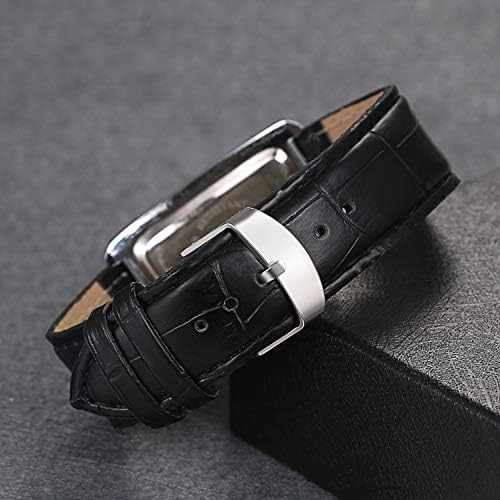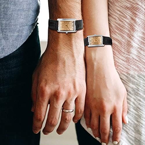 Lancardo Romantic Couple Watch Set Square Watches Love for Men and Women 2 Pcs Retro Vintage Silver Tone Case Crocodile Pattern Black Leather Wristwatch for Father's Day