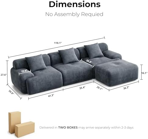 The sofa set is delivered in TWO BOXES, which may arrive separately within 2-3 days. If you don't receive both boxes immediately, please be patient and allow a few more days for delivery.