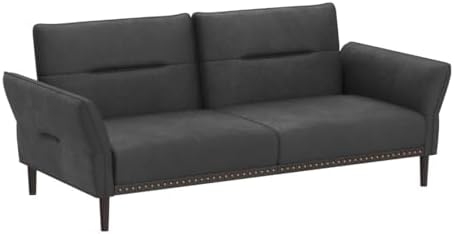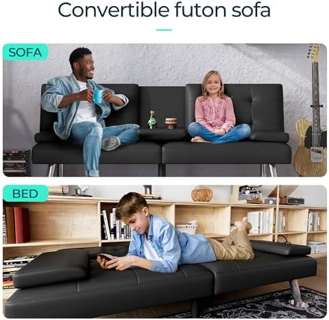 So I was looking online because me and my husband were remodeling our home office and he lovesssssss the color black so we looked on Amazon and found this sofa. It’s not huge which is good because it saves a lot of space and we love it because it transforms into a bed. Which is very convenient. It also comes with cup holders in the middle, which I thought was very amazing highly recommend