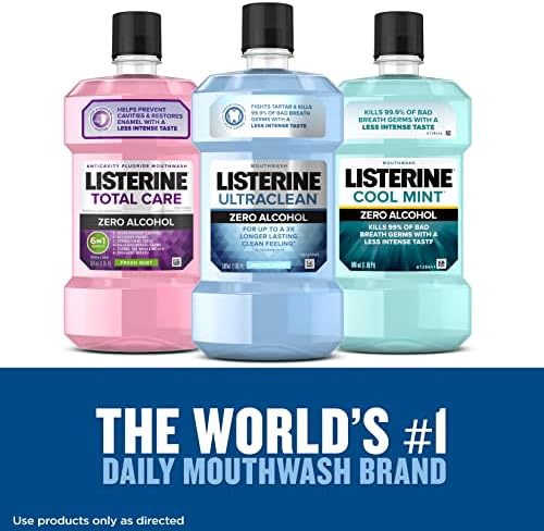 Listerine Ultraclean Zero Alcohol Mouthwash provides effective oral care. This zero alcohol mouthwash gets into hard-to-reach areas that brushing might miss to kill 99.9% of germs that cause bad breath, and tartar stains. When used twice daily, the oral rinse fights tartar buildup for 24 hours and helps prevent tartar stains, which can keep teeth naturally white. Featuring a refreshing and less intense Arctic Mint taste, the non-alcoholic mouthwash also helps neutralize bad breath and provides a fresh, clean feeling that lasts up to three times longer than brushing alone. To experience a refreshing, dentist-clean feeling, rinse with the tartar control mouthwash for 30 seconds twice daily as part of your regular oral care routine.