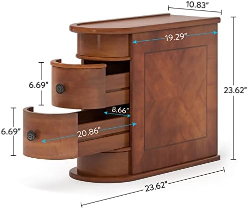 This table is more attractive than I expected. Our first house guest commented that she thought I'd picked up an Art Deco piece at an antique store. I'm using it in the den as a side table beside a recliner. It fits perfectly and can easily hold a beverage (on a coaster!) and remotes; plus, it has two roomy drawers for tissues and other odds and ends. The workmanship is excellent. It was packaged extremely well and arrived in good condition, which is not always the case with furniture. I'm glad I don't have to return it because it's heavy (a nice feature because it's unlikely to tip). The finish has a bit of an orange tint, which I'm not crazy about, but when I got it in place, it blended well with my walnut furniture. Overall, I'm extremely pleased. Well worth the price.