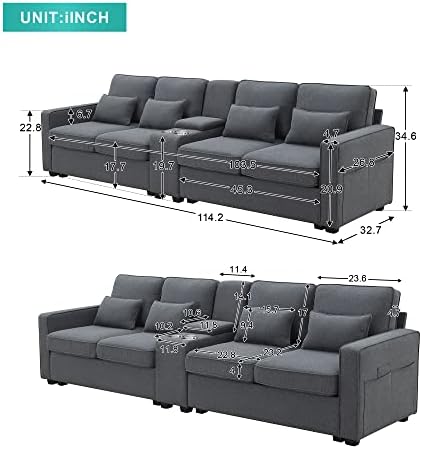 This couch is awesome! It’s comfy, in style and a great price! The couch arrived on time and in 3 boxes. Assembly took maybe an hour and instructions were simple to follow. The center console with cup holders and charging port are as pictured and is a great feature to have. Just buy it already!!