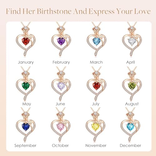 LOUISA SECRET Rose Flower Heart Birthstone Necklace