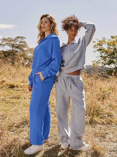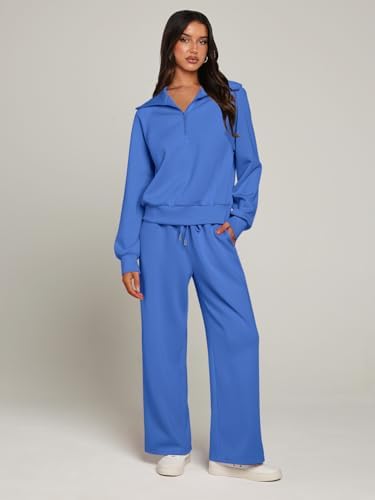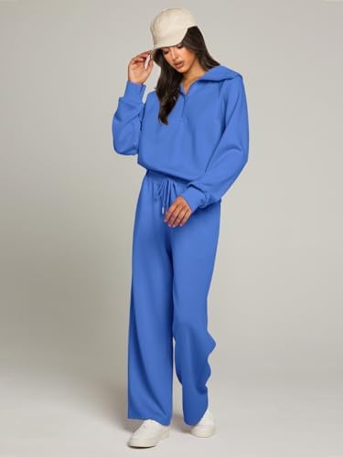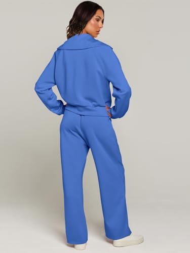 With its fashion-forward design, this loungewear set features a foldover collar and a trendy 1/2 zipper v neck.