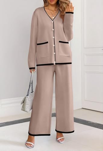 Featuring a chic V-neck design, long sleeves, and two front pockets, the sweater sets exude elegance and sophistication. The button-up closure adds a touch of class, while the contrast color edge detail creates a unique and eye-catching look that is suitable for any occasion.