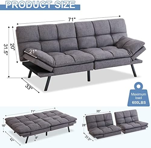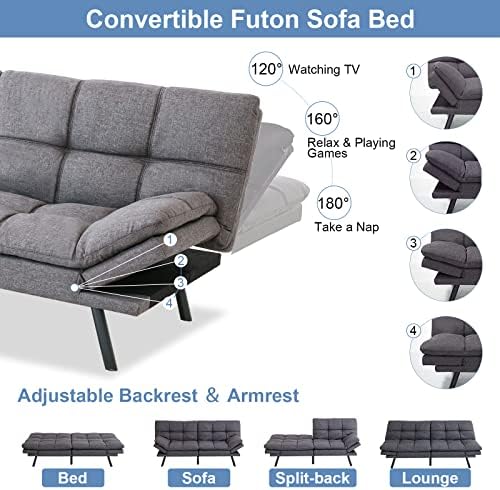 MUUEGM Modern Convertible Memory Foam Futon Sofa Bed, Creating a Boutique Experience for The Better Life!