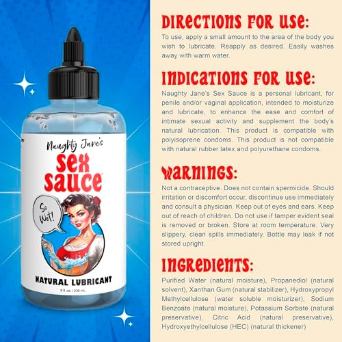 This American-made, body-safe, unscented, glycerin-free lubricant is water-based and safe to use with all toys. Get wet and messy! You can spread this or spill this on skin, chairs, sex toys, or your partner and enjoy an easy clean-up. Simply wipe it down or wash it off with warm water and mild soap. It can be used externally for self-pleasure or internally as a natural lubricant for yourself or you and your partner! Measurements: 8 fl. oz. / 236 mL. Ingredients: Purified Water, Propanediol, Xanthan Gum, Hydroxypropyl Methylcellulose, Sodium Benzoate, Potassium Sorbate, Citric Acid, Hydroxyethylcellulose (HEC). Color: Clear. WARNING: Should irritation occur, discontinue use immediately. Keep out of eyes and ears. Keep out of reach of children. Store at room temperature. CAUTION: Very slippery, clean spills immediately. Keep the bottle upright.