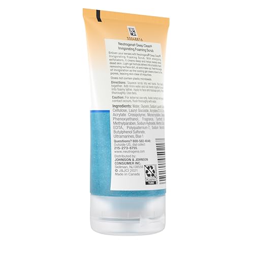 Revive your skin and enliven your senses with Neutrogena Deep Clean Invigorating Foaming Facial Scrub. This exfoliating facial cleanser cleans deep and helps leave skin feeling refreshed and exhilarated. Dermatologist-tested, the light gel formula lathers into a tingly, bubbly foam that washes away dirt, oil, and bacteria and removes surface makeup with gentle exfoliators that work to sweep away dead skin. This invigorating, cooling gel face scrub goes deep into pores to remove skin of impurities. From a dermatologist recommended skincare brand, this daily exfoliating face wash leaves skin with a fresh, clean and energized look. It makes the perfect addition to your daily beauty and skincare routine for an at-home self-care experience