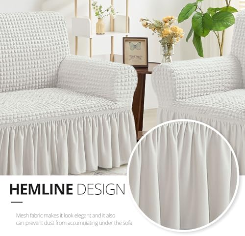 This product is very well made and fit my sofa perfectly. I loved that is very stretchy. Also, esasy to installand the color is bright and beautiful.However,I had ti return it because niether my husband or Iliked the look. The bubbly fabric is too much for us, especially because it is rough on the skin.I wish they have this product in a softer fabric.
