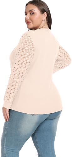 OLRIK Womens Plus Size Crewneck Long Sleeve Fall Lace Tops