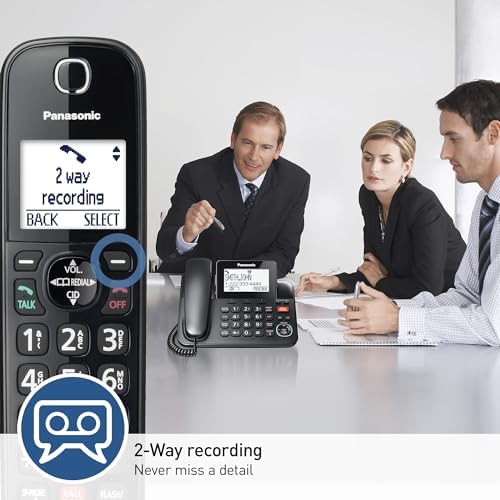 Panasonic Corded/Cordless Phone with Advanced Call Block, 2-Way Recording and Digital Answering Machine, 2 Handsets Expandable up to 6 Cordless Handsets - KX-TGF852B (Black)