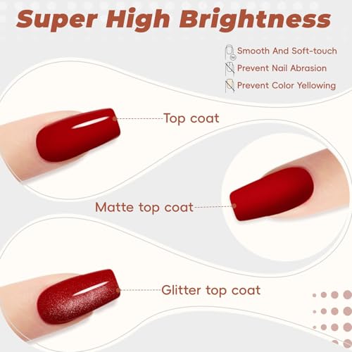 This set is very good for what the price is. Yes the bottles are small but I've done 5 sets so far and still have plenty of polish. It comes with a base coat, regular top coat, matte top coat, and glitter top coat to accommodate any sets you would like to do. The only thing didn't like is how there is no nude polish, but it's not a deal breaker. Attached is an image of a set I did with only supplies from this set other than that false nail tips.