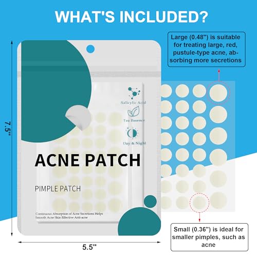 Pimple Patches for Face, Hydrocolloid Acne Patches, Zit Patches for Day and Night Invisible with Tea Tree, Salicylic Acid & Cica Oil-280 Patches,5 Size,2 Thickness