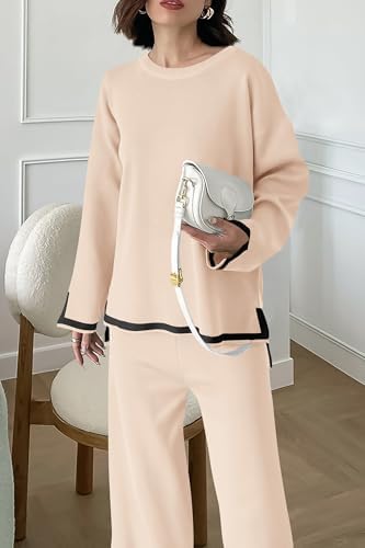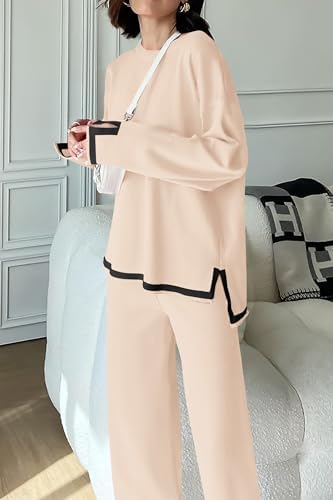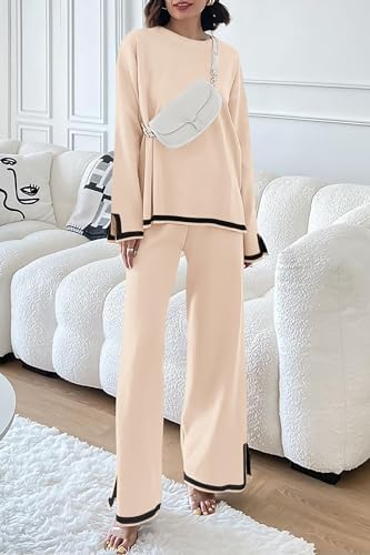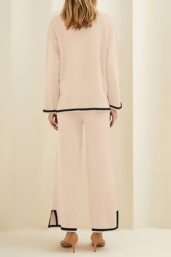 PRETTYGARDEN Womens Trendy Crewneck Sweater Top and Palazzo Pants Set