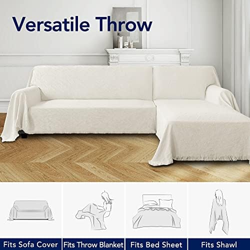 Perfect way to transform an old couch without paying $$$$ for a slip cover. This couch is very long and bulky, so a couch cover would've been expensive. This product is essentially a giant blanket. It is a thick, comfortable, heavy material, so it actually looks and feels very nice. It is not big enough to cover the back of this particular couch, but that doesn't matter to me since it is against a wall.