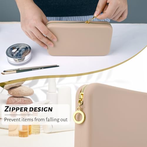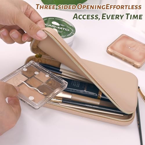 Amazing quality, the claim on the size is very true, i could fit 10 bug brushes together and then in another pouch i can fit 16 small brushes. The material is amazing, stain proof and fingerprint proof, very sturdy, the zipper is easy to use and opens well, it keeps my products and brushes organized nicely. I will be reordering more for gifts and whatnot. Amazing silicone material. Great color and very great size.