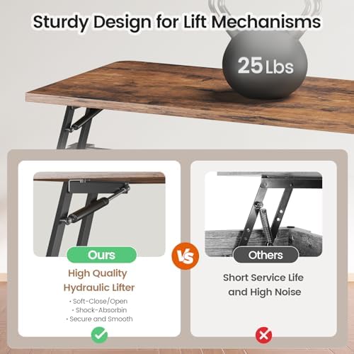 The coffee tables adopts a more sturdy and special lifting metal arm, which is more load-bearing than ordinary coffee table with lift top.