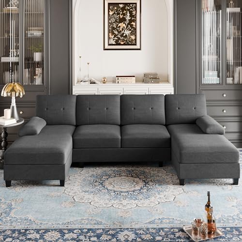The U-shaped sofa has a simple and elegant design. Tight sewing details and linen fabric and solid wood construction ensure that this combination sofa is structurally stable and of great quality. The high-density foam padding in the cushions and the pocketed coil spring system provide a comfortable sitting experience.