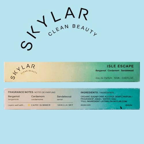Skylar Isle Escape Eau de Parfum - Hypoallergenic & Clean Perfume for Women & Men, Vegan & Safe for Sensitive Skin - Fresh Perfume with Notes of Bergamot, Cardamom & Sandalwood - 10mL /0.33 Fl oz