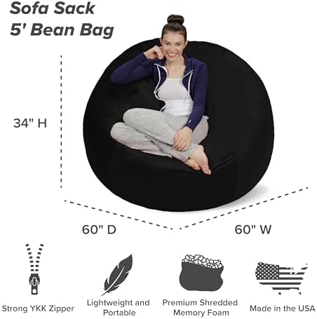 Bought this around the new year of 2021. Got it for 87 bucks or so. Looks like it’s about 120-150 normally depending on the color. Mine is a dark warm grey. It’s very heavy when shipped. It weighs at least 50lbs in a box. Keep that in mind when dragging it around or shipping it.My honest review is that my wife and family were impressed. The size, once expanded, is like a love sack. It has a nice double zipper then it’s filled with foam. I’m about 6’ 187lbs and it’s very comfortable for me, and I could cuddle with my wife in it. Two kids should be very comfortable to sit in the 5’ sack and game next to each other. That’s one thing I’ll say, it’s a very wide footprint. My daughter and I will pick it up and toss it and drop it to fluff it up. She will jump off the bed and land on it. It’s well made.Now I’ve bought a foam bag and they are fine, this one is supposed to be memory foam. It takes at least 2 days for it to relax. Probably more like 4. It’s super heavy as I mentioned when shipped and is a giant foam block. You may be tempted to open it to help it spread the foam. Just break it up without opening the cover. It’ll expand, don’t worry. I did it in chunks and then would pick it up and drop it, flip it, over the next few days.My youngest daughter said it smelled a little. We’ve got several memory foam beds and it’s typical. This one isn’t as bad as most off the off gassing from the beds. Just let it air out and it will be fine from our experience.The comfort of this thing is great. Personally your not going to notice the memory foam comfort like a mattress because the chunks are small. It’s not that type of experience, yet it’s comfortable. It’s definitely not stiff like my standard foam bag. This is much more like a Luv Sac brand. Very wide and comfortable. A good napping sac. Almost too good to act as an upright chair for an adult.I’m pretty darn happy with the price. Even at 120 or 150, I’d be very happy with it. The material and double zipper feels well made and it feels well branded. Doesn’t feel discounted. Two of these in a 12 x 12 room would be fun but I’d advise it would be too much. Also I’ll add these are a bit awkward to drag around. I’ve got a three story house and I would suggest getting the sac to where it should be. Great for a rec room at 5’.I believe there also isn’t an inner bag. I think, but not sure. Cover would be washable but you’d have to pull the foam out. There’s some unboxing videos with this brand online or on YouTube.