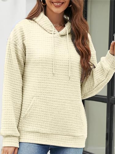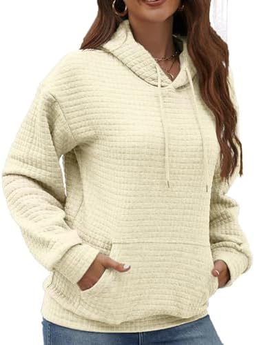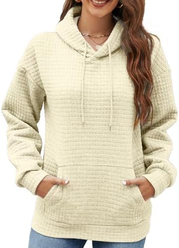 NOVEPT Waffle Hoodies with Kangaroo Pocket Drawstring Pullover Hoodie for Women