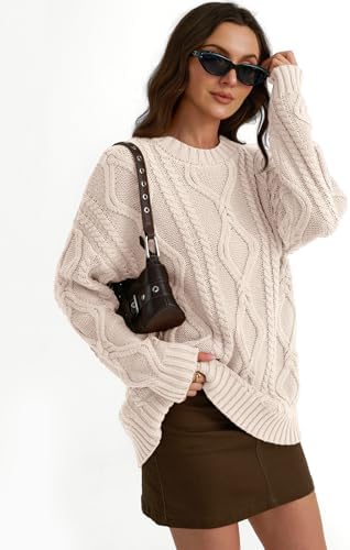 Trendy Queen Women's Oversized Cable Knit Crewneck Sweaters