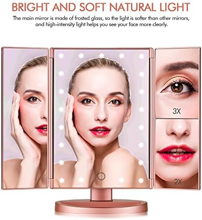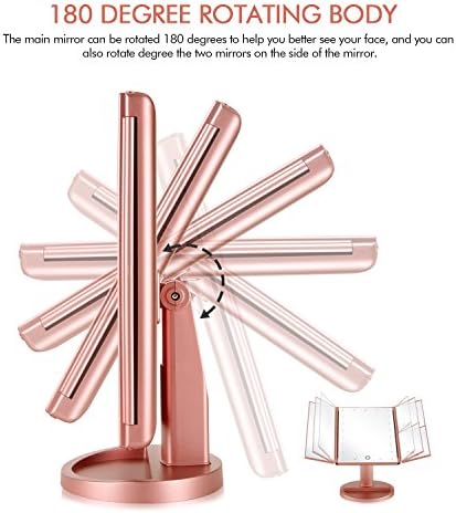 This mirrors can achieve 180° free rotation and can be fixed at any positions, making it easier to get perfect makeup. Tri-fold and detachable light mirror protect it from dust or scratches, suitable for travel.