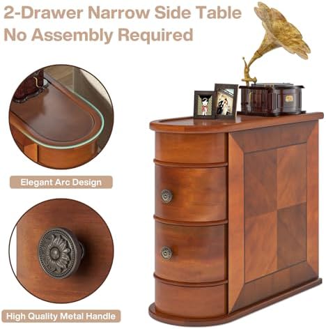 Tribesigns 2-Drawer Narrow End Table, No Assembly Required