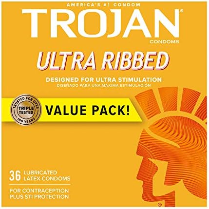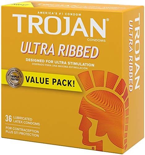 Ahhhh, that’s the spot. Trojan Ultra Ribbed Condoms are designed with deep ribs to seriously increase stimulation. Ideal for all kinds of sex, you can't go wrong with these ribbed condoms. Made with a silky smooth lube, Trojan Ultra Ribbed lubricated latex condoms have a special reservoir tip for extra safety, meaning all you and your partner need to worry about is what position you're going to try next. Designed with premium quality latex, these condoms have been electronically tested to help ensure reliability and protection against unplanned pregnancy and STIs. Trojan brand condoms have been trusted for over 100 years and are America's #1 condom brand*. Trojan brand lubricated condoms are made from premium quality latex to help reduce the risk of unintended pregnancy and sexually transmitted infections. Trojan brand condoms is committed to investing in public health efforts to support sexual health. *Data from AC Nielsen total AOC Latest 52 weeks ending 8/22/2020