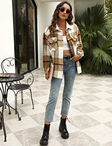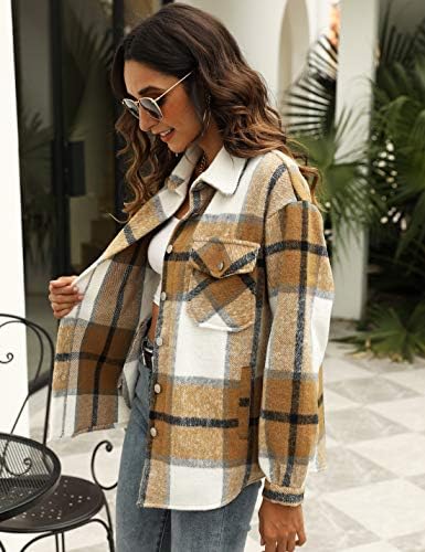 UANEO Womens Plaid Shacket Button Down Wool Blend Fall Flannel Shirt Jacket