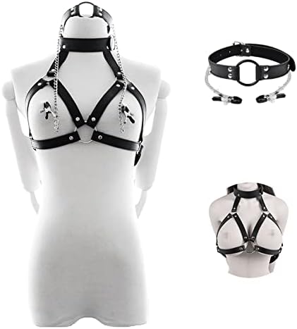 The tightness of the breast clamp can be adjusted and protected by the latex coat. The size of the necktie can also be adjusted. The combination between black leather and shiny metal can give a visual shock. The integrative Restraint suit can cater to SM Restraint needs.