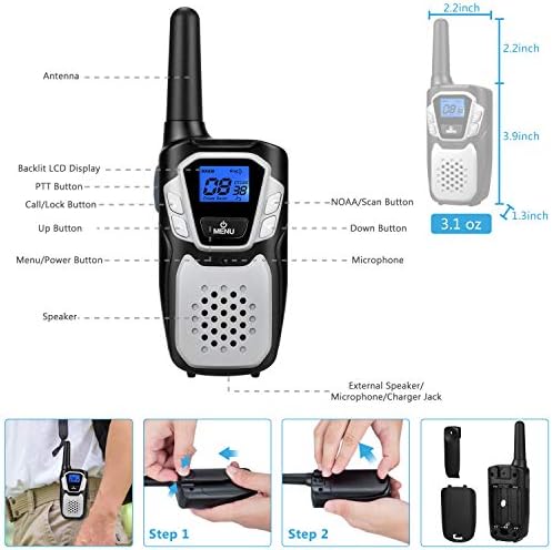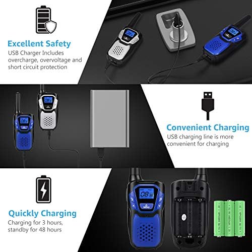 Each walkie-talkie is equipped with three original AA batteries, which have a long battery life and a large capacity.