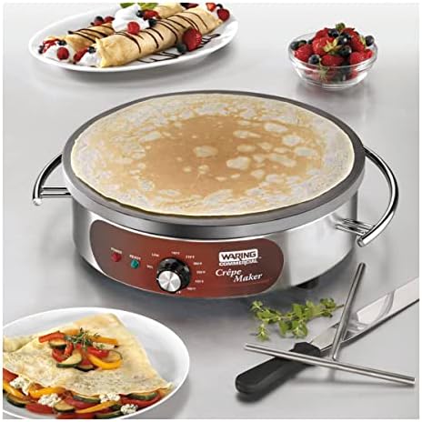 Create an endless variety of delicious crêpes with the Waring WSC160X 16" Electric Crêpe Maker. A 1" thick, aluminum cooking plate heats up quickly and maintains its temperature all day long. An adjustable thermostat, from 280°F to 570°F, gives you tremendous flexibility to create amazing signature dishes. A durable stainless steel base with heat-resistant carrying handle makes it easy to transport.