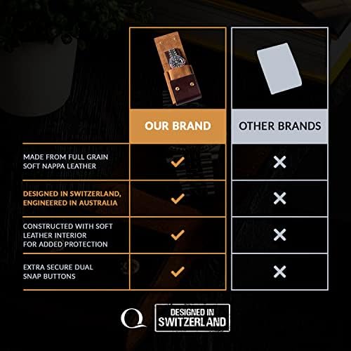 You'll appreciate the interior of the Qwatch pouch is made with soft leather and folds inwards to protect the watch from movement and damage. The exterior of the watch pouch is made from protective leather to ensure flexibility and maximise protection.