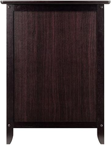 Add extra table space to a living room, den or bedroom with the versatile and ageless design of the Winsome Wood Eugene Accent Table. Whether you decide to put your alarm, lamp or family photo, the clean and simple design of this table allows it to blend well with most home decor. This Winsome classic is finished in rich espresso and adorned with two satin nickel knobs for a sticking contrast of elegance. Featuring a small pull-out drawer for storing pens, notepads, remote control and small accessories, organized and out of sight. The bottom door opens up to more storage space. Keep photo albums accessible or some of your favorite night time storybooks within reach in the spacious compartment. For larger beds, sofas and/or rooms, try adding one accent table on each end (each sold separately).
