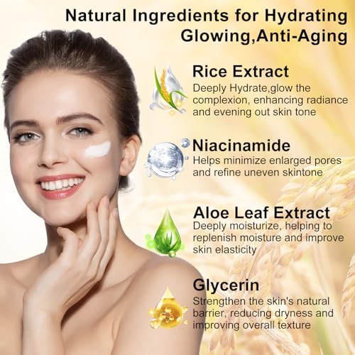 - Our Rice Water Skin Care Products combine the powerful benefits of Rice Extract,Niacinamide,Hyaluronic Acid and Vitamin E to deeply hydrate,nourish and repair the skin. This expertly formulated blend helps combat dryness and signs of aging,promoting a glowing,rejuvenated complexion. It works to improve skin texture,boost moisture retention,and enhance overall radiance,leaving your skin looking healthy and revitalized.