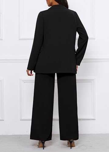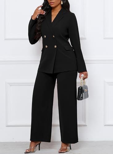 Women's Trendy 2024 Two Piece Outfits Blazer Jacket and Wide Leg Pants With Pockets Fall And Winter