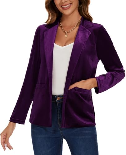 MINTLIMIT Women's Velvet Long SleeveButton Front Notched Lapel Pocket Blazers