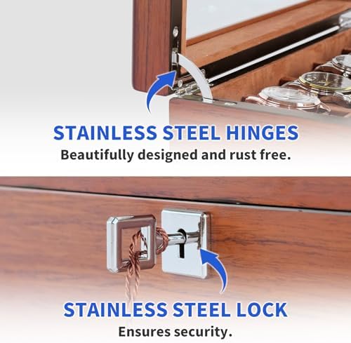 I was very pleased with the quality of this watch box, well exceeded my expectations. Will make a fine gift for a watch enthusiast. Excellent value for the money. Don’t pass on this one, you won’t be disappointed.