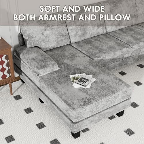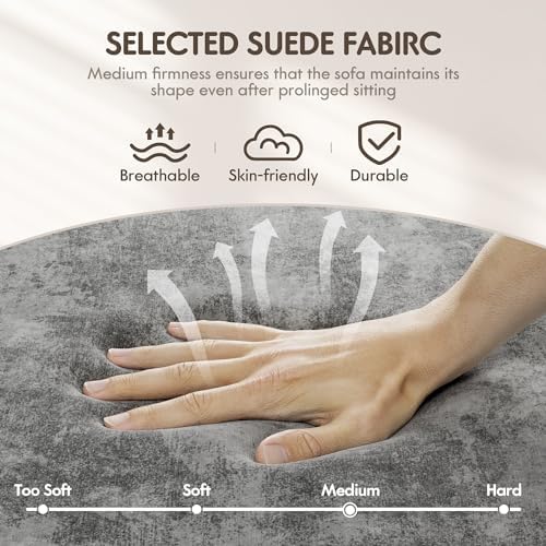 I was a bit apprehensive about buying a $400 couch off Amazon, but wow, this couch is fantastic! It really wasn’t difficult to put together: most of the time is just spent unpacking the boxes. It is very comfortable as well. It’s a bit firm, but I like a firm couch. Also the fabric is absolutely perfect. We have a cat who destroyed our last couch, and the chenille fabric is woven tight enough for her to not get her claws in. She has scratched it several times and hasn’t made a single tear, or any visible loose threads. This thing is also huge! My 6’3” husband and I can both fit on the couch comfortably with room to spare. The only small complaint is that the cushions don’t attach to the back of the couch, but I put adhesive Velcro on and it’s been perfect ever since. This is the perfect couch for that price!
